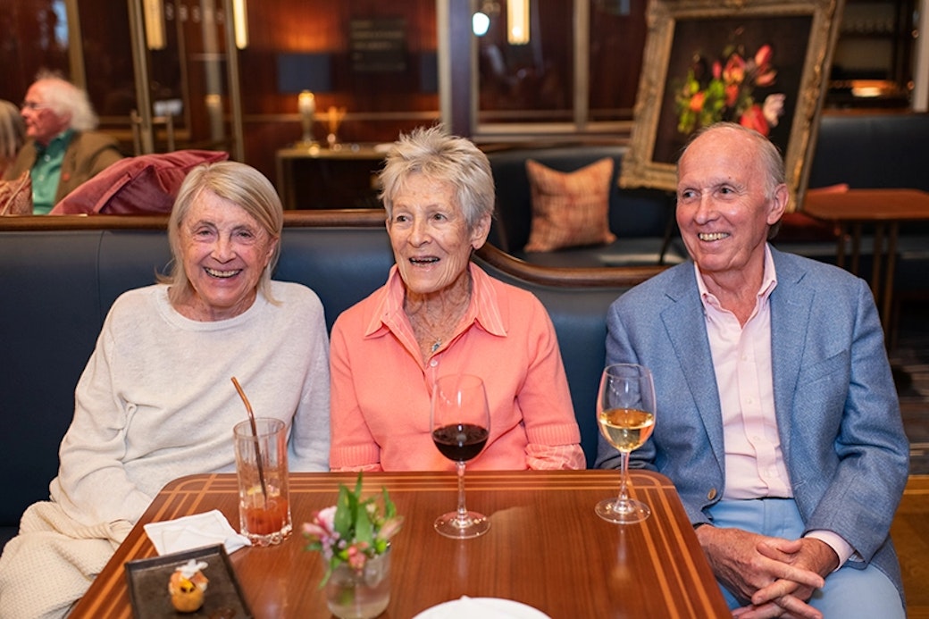 While there’s no jigsaw room at Auriens as there is at Coopers Chase, the fictional later-life community in Thursday Murder Club, the new film based on Richard Osman’s novel where residents meet for amateur detective work, life is as busy and social as you want it to be, Liz says. As we pass through the lobby, designed by Albion Nord, she points to the events board listing this month’s itinerary of talks, concerts, films and dining experiences. There’s a library, a cinema, a fine-dining restaurant and a speakeasy bar that is often buzzing past midnight. “I still see my local friends, but it’s fun to meet new people and hear their stories about what they’ve done with their life,” Liz tells me.